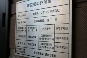 会社紹介 会社概要 商号 池田ルーフテック株式会社 建築業許可 京都府知事許可(般-26)第40129号 屋 根 工 事 京都府知事許可(般-26)第40129号 板 金 工 事 所在地 〒627-0025 京都府京丹後市峰山町堺668-13 TEL 0772-62-6003 FAX 0772-62-6562 創立 平成15年1月 設立 平成26年1月 資本金 500万円 代表取締役 池田 崇 業務内容 建築板金業 一般住宅・工場・会社事務所・店舗などの屋根工事金属屋根(瓦棒、段葺、竪平葺、折板、波板、一文字葺き、金属瓦等金属ガルバリウム鋼板及びカラーステンレス鋼鈑等を使用した屋根工事全般) 外壁工事窯業系サイディング、金属サイディング、角波、スパンドレル等 樋工事雨樋全般 板金工事 各種板金工事全般 施設 網野工場:京都府京丹後市網野町浅茂川 取引銀行 京都北都信用金庫、京都銀行 経営理念 地域と共に成長し地域に愛され地域になくてはならない存在でありたい。